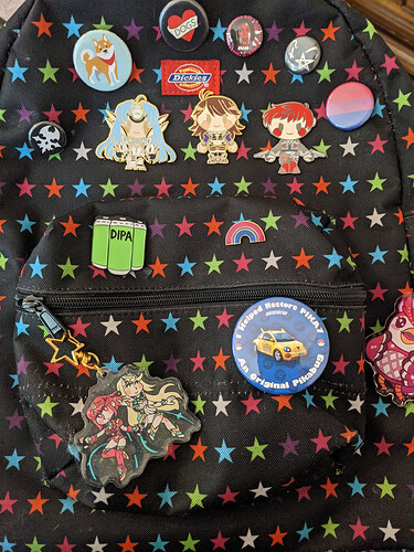 I’ve got to clean my messy room, so I don’t have many photos to share ^^; Last September I received my order from JoyPendant (I assume most of you are familiar with her, if not here’s her Twitter, she’s a fantastic artist) including Bart and Zohar pins, a sticker, and a charm! (Zohar couldn’t take a good picture of, but I assure you it is beautiful!)