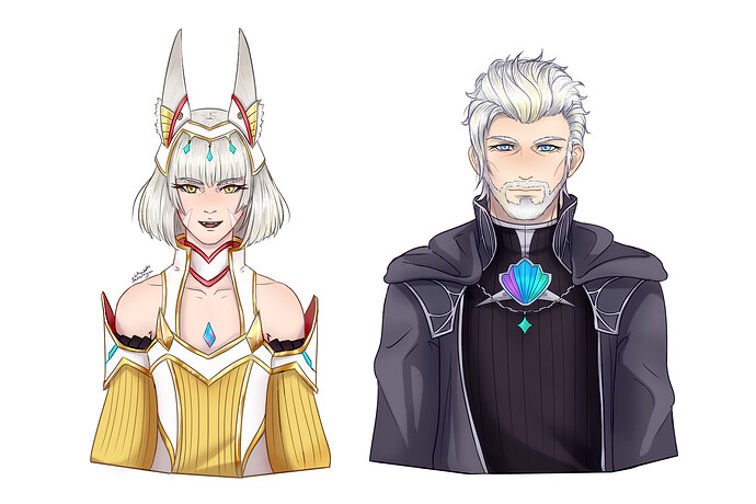 And a quick drawing of Edbart and Elvira Fatima, Bart’s father and Margie’s mother from Xenogears, based on Soraya Saga’s artworks of them
