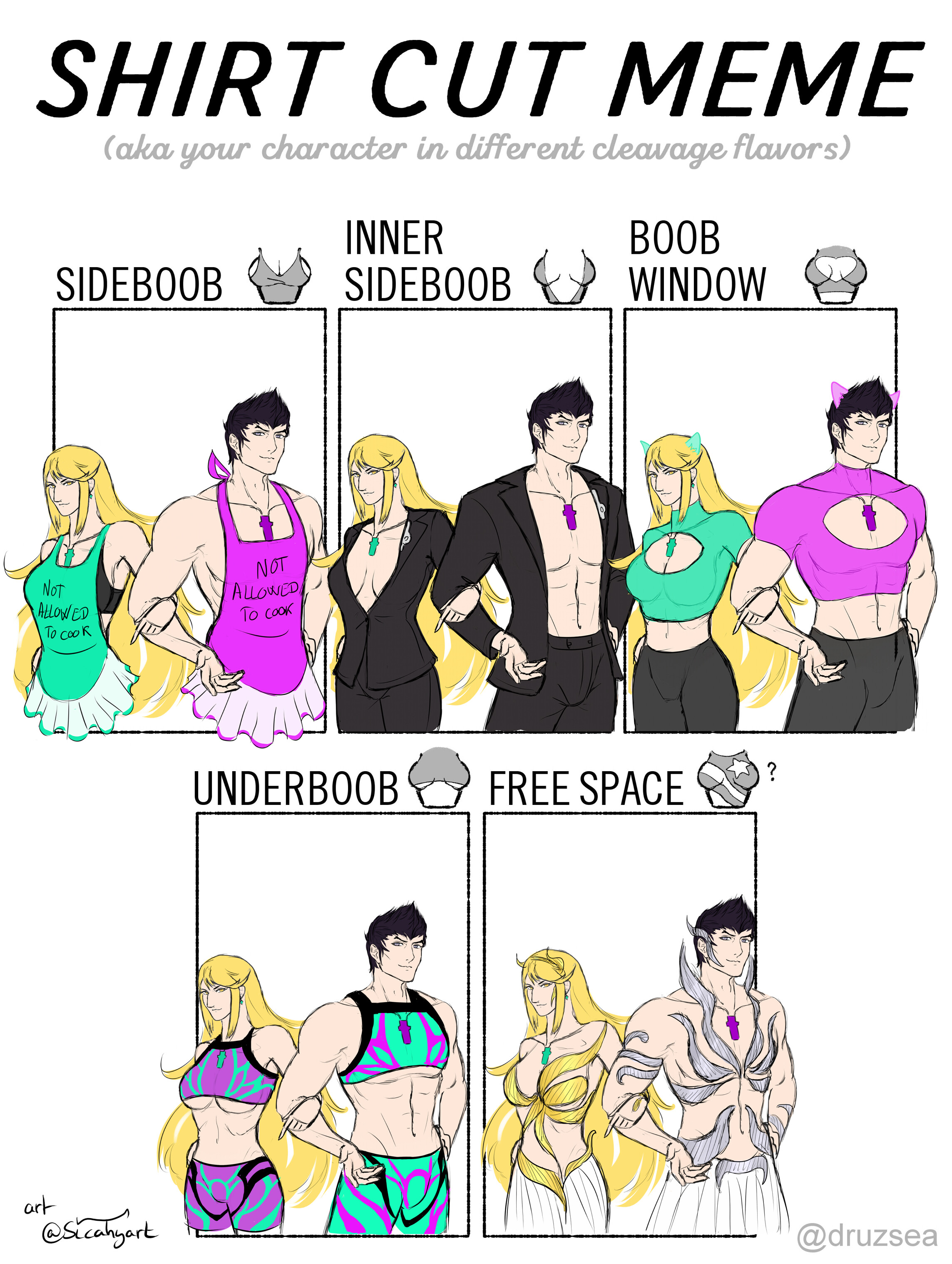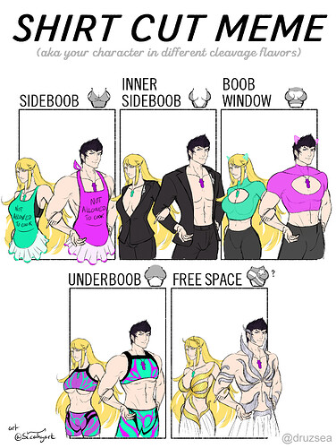 Made a full digital artwork of the boob window crop top outfit from the meme, because why not