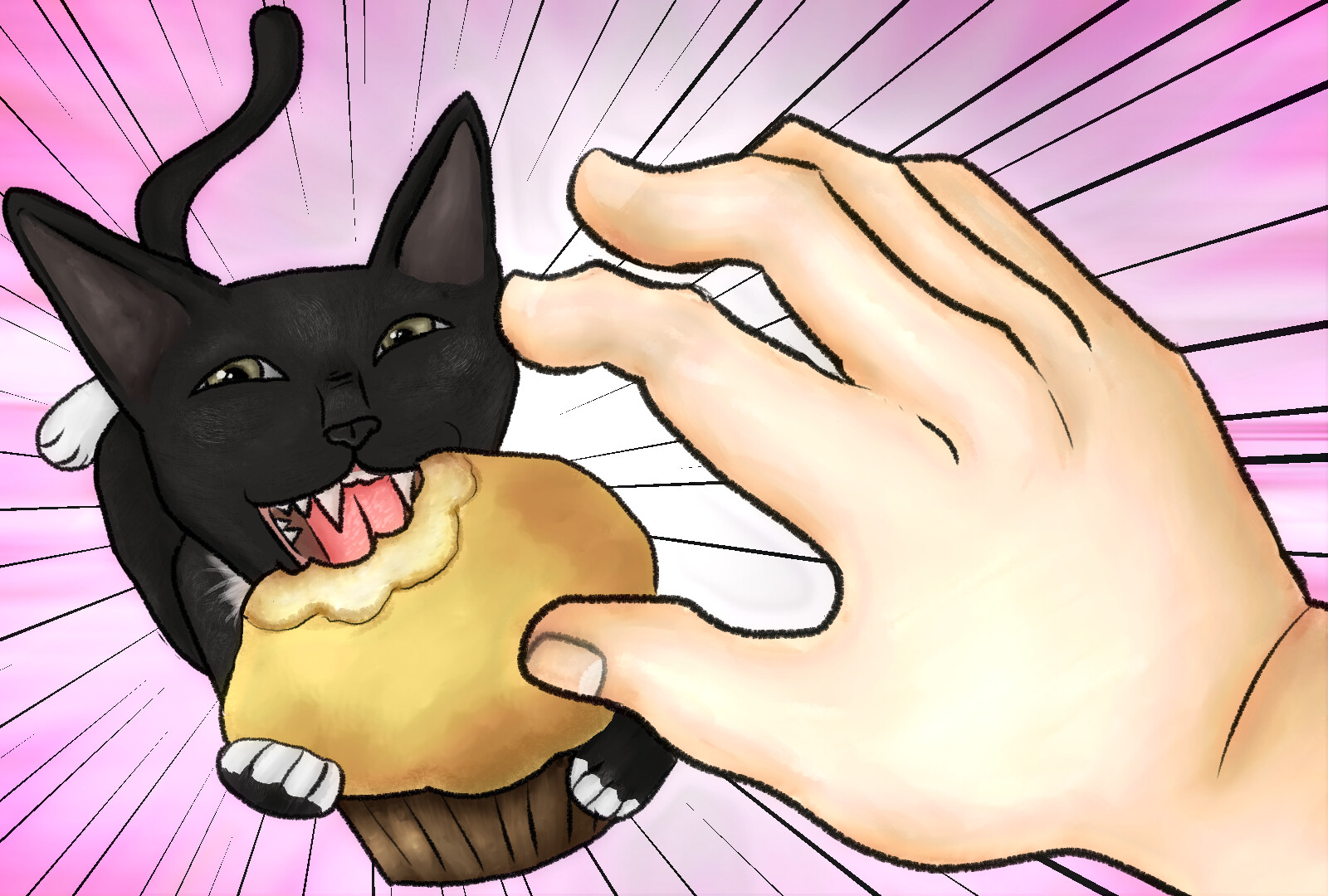 This is our little kitty Elodie. She’s stealing a muffin and zooming towards the camera. XD
